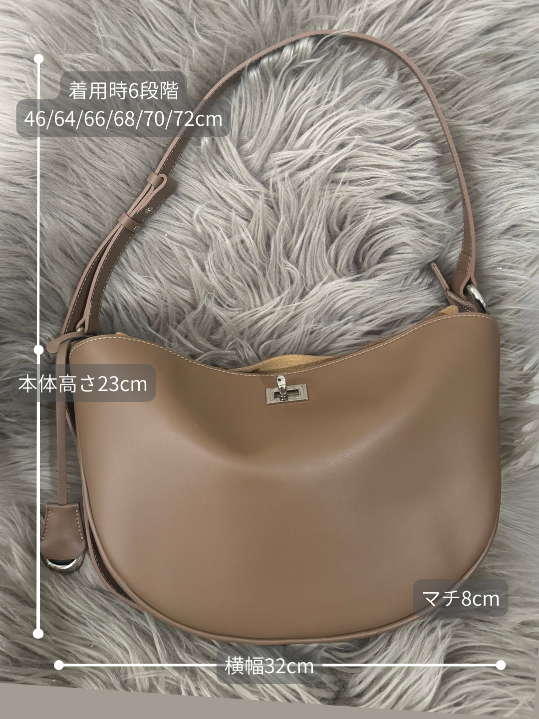 半月型のシルエットが特徴的な「Fortune Cookie Bag」は、使い勝手のよさを追求したデザインが魅力です。前ポケットにより小物の出し入れがスムーズで、500mlペットボトルやiPadも収納可能。旅行や荷物が多い日にも最適です。ストラップはワンショルダーでもクロスボディでも使え、6段階の長さ調整で快適なフィット感を実現。上質な本革素材が耐久性と高級感を両立しています。